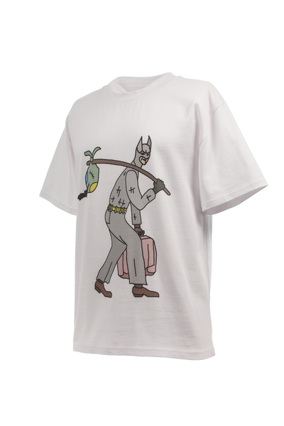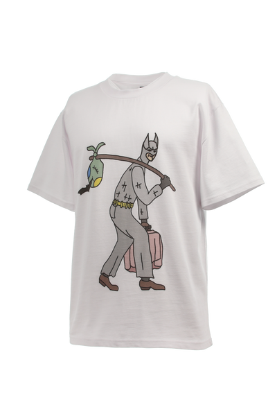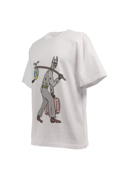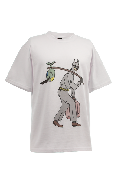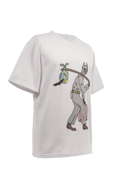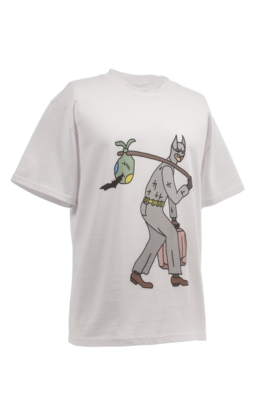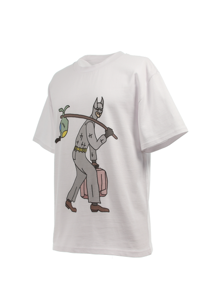 Vagabond Bat is a playful reimagining of the caped crusader, stripped of his sleek gadgets and high-tech persona, and instead recast as a wandering drifter.